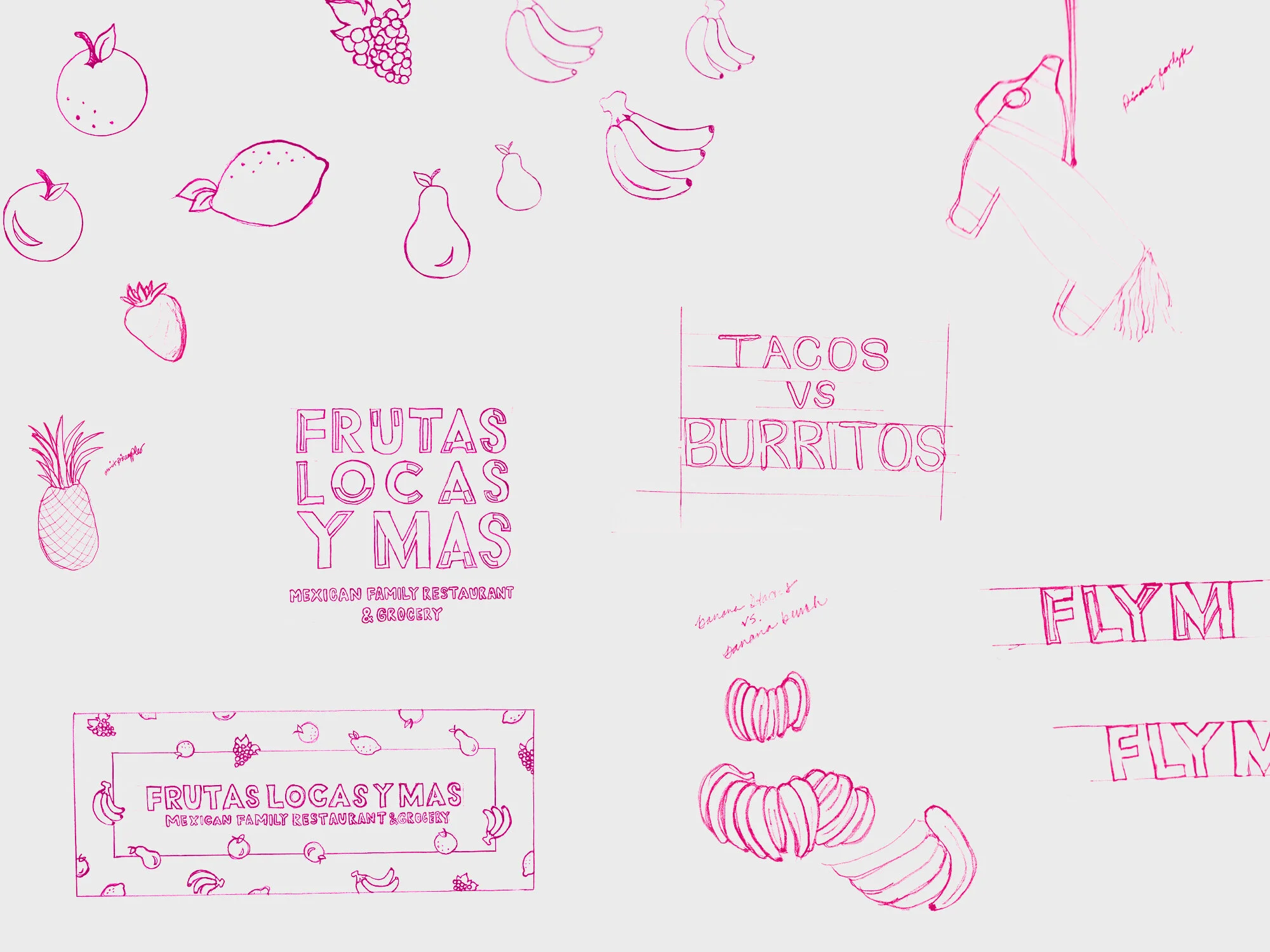 The visual identity of Frutas Locas captures the vibrance of their refreshing Mexican fare. The bright fruits, playful type, and generous use of color embody the establishment’s rich culture and personality.